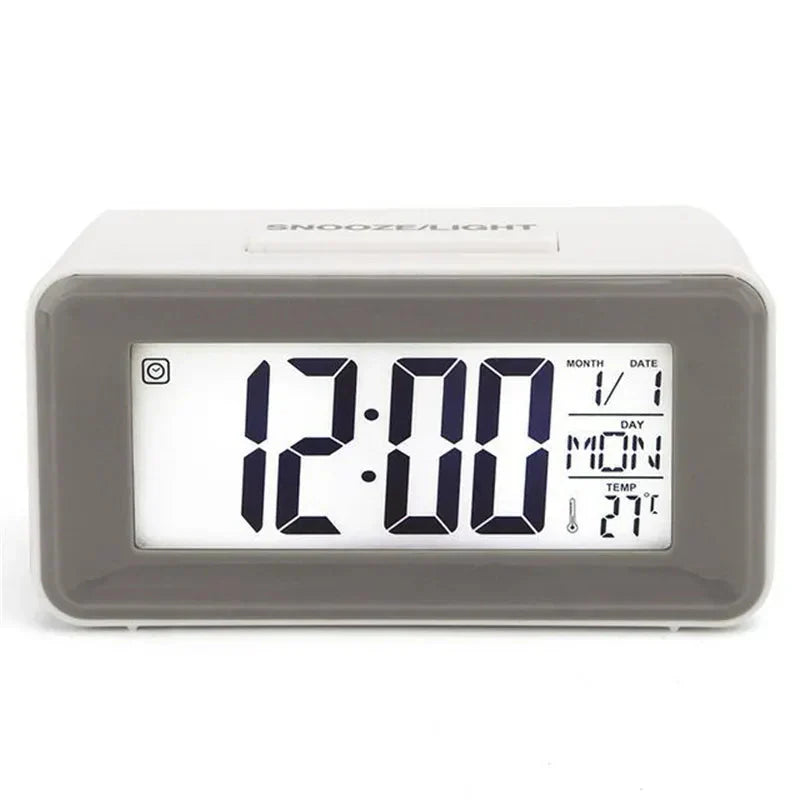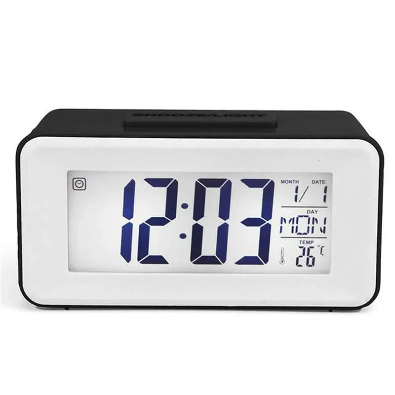 Questa sveglia non è solo un orologio, ma un vero e proprio centro informazioni personale. Il display LCD ampio e chiaro mostra l'ora con cifre grandi e ben leggibili, perfette anche per chi ha problemi di vista. Ma non è tutto! Oltre all'ora, potrai visualizzare la data completa, il giorno della settimana e persino la temperatura ambiente. Immagina di svegliarti e avere subito tutte queste informazioni a portata di mano, senza dover prendere il telefono o cercare altri dispositivi. La funzione "SNOOZE/LIGHT" sulla parte superiore ti permette di posticipare dolcemente la sveglia o di illuminare il display al buio con un semplice tocco, garantendoti il massimo comfort sia di giorno che di notte.