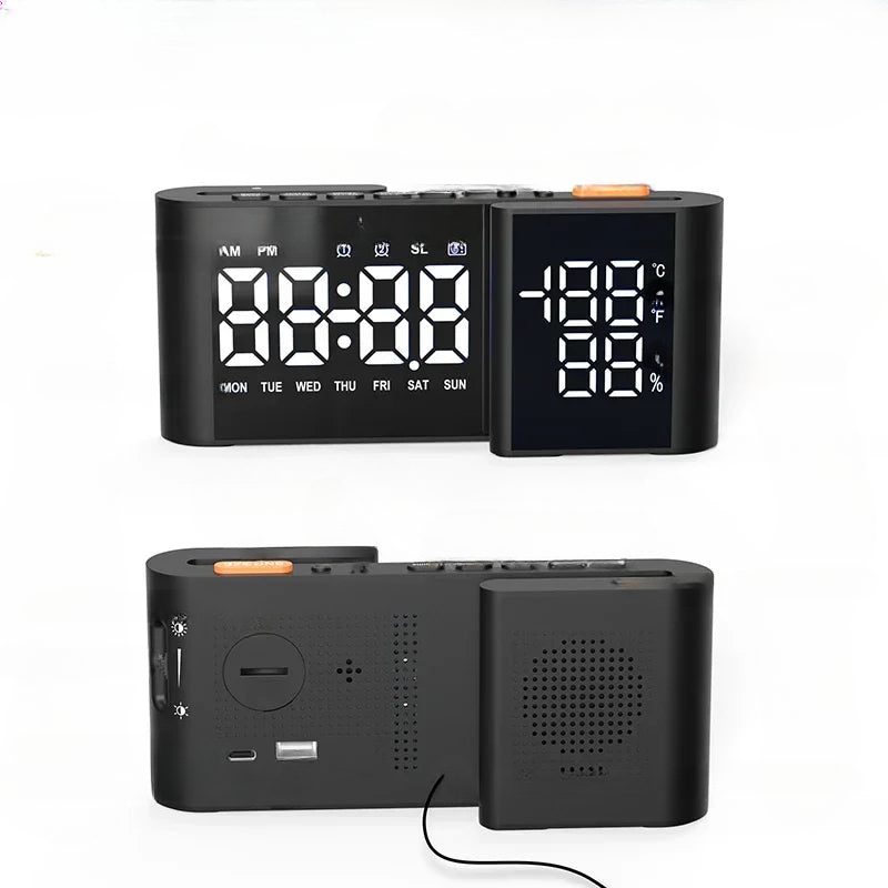 La caratteristica più sorprendente di questa radiosveglia è senza dubbio il suo ampio display a specchio. Non solo ti mostra l'ora con grandi numeri luminosi e facili da leggere, ma funge anche da specchio, perfetto per un rapido controllo del look appena sveglio. Ma c'è di più: un display separato mostra la temperatura ambiente (in gradi Fahrenheit) e il livello di umidità, così sai sempre come vestirti e se l'aria della tua stanza è ottimale. Questa radiosveglia a specchio con termometro ti offre tutte le informazioni essenziali a colpo d'occhio, senza occupare spazio aggiuntivo sul comodino.