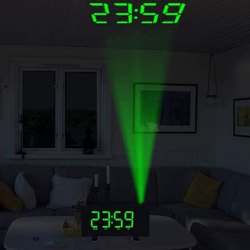 - Proiezione dell'ora regolabile: visualizza l'ora sul soffitto o sulla parete con un angolo personalizzabile, con numeri verdi luminosi e facilmente leggibili.