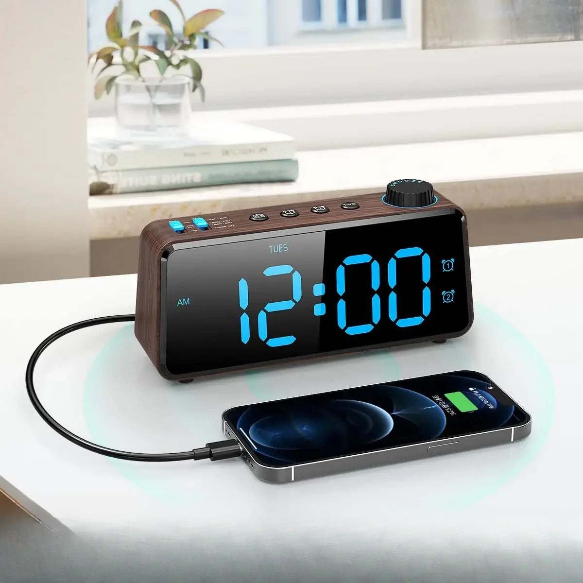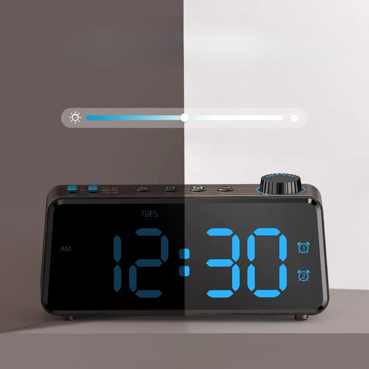Stanco di sveglie complicate? La nostra radiosveglia digitale con alimentazione a rete è pensata per semplificarti la vita! Immagina di svegliarti dolcemente ogni mattina con la tua stazione radio preferita o un allarme classico. Con il suo design moderno effetto legno e il display LED blu brillante, si adatta perfettamente a qualsiasi comodino o scrivania. Non dovrai più preoccuparti delle batterie scariche, grazie all'affidabile alimentazione a rete. Imposta due allarmi diversi, uno per te e uno per il tuo partner, oppure uno per i giorni feriali e uno per il weekend. È il compagno perfetto per iniziare ogni giornata con il piede giusto.