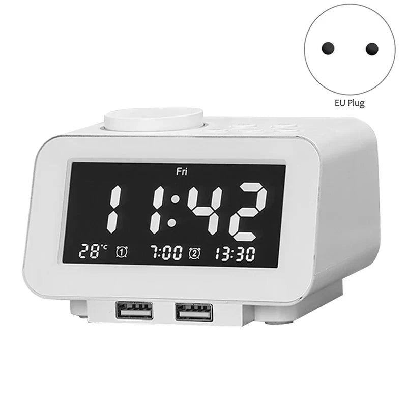 La nostra radiosveglia non è solo un semplice orologio. È stata pensata per semplificare la tua vita notturna e mattutina. Con le due porte USB integrate, puoi ricaricare facilmente il tuo smartphone, tablet o qualsiasi altro dispositivo elettronico direttamente dal comodino, senza bisogno di adattatori extra o prese aggiuntive. Immagina di svegliarti con il tuo telefono già carico e pronto per affrontare la giornata! È la soluzione ideale per mantenere la tua zona notte ordinata e i tuoi dispositivi sempre a portata di mano e pieni di energia.