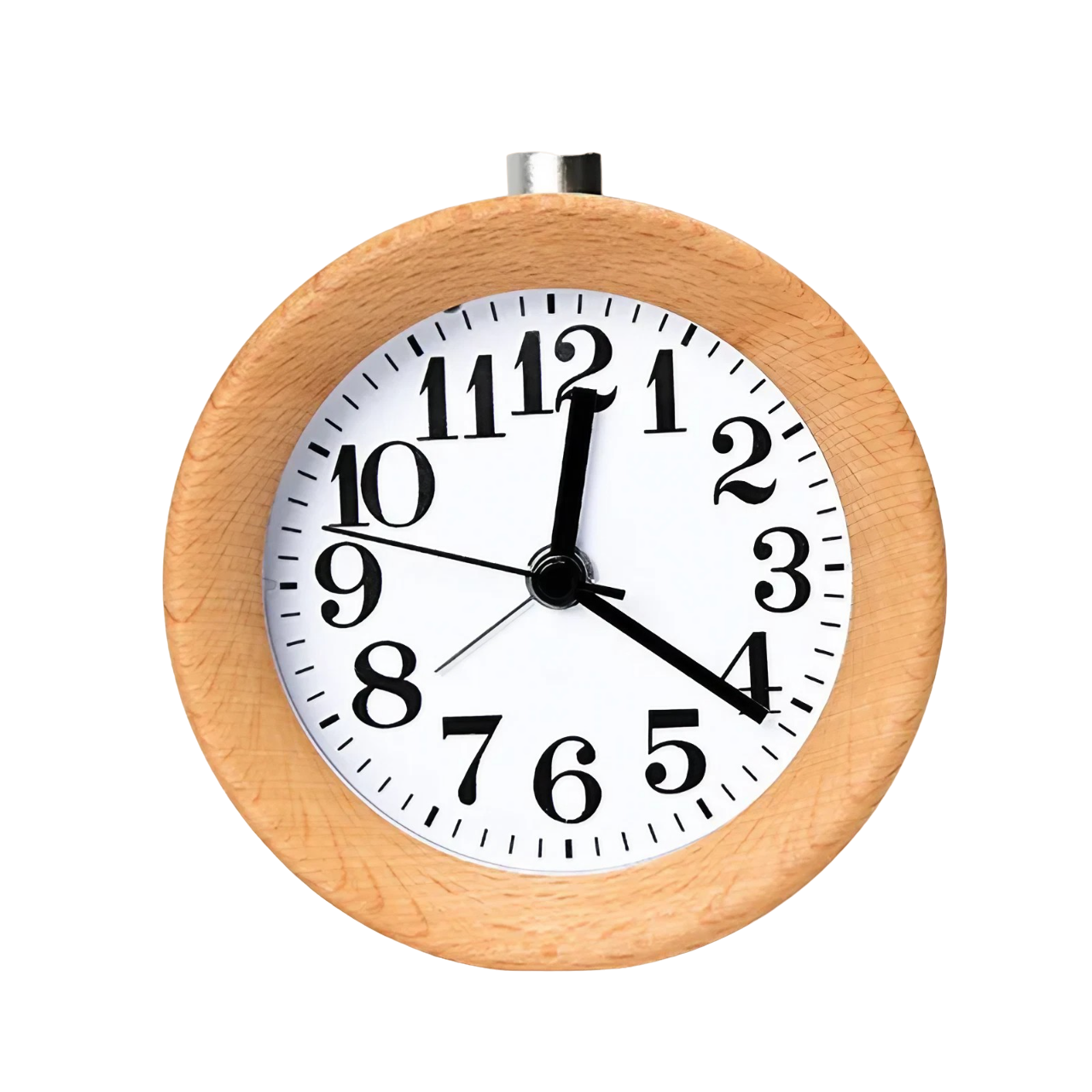 La sveglia analogica rotonda in legno chiaro che ti fa iniziare la giornata con il sorriso.