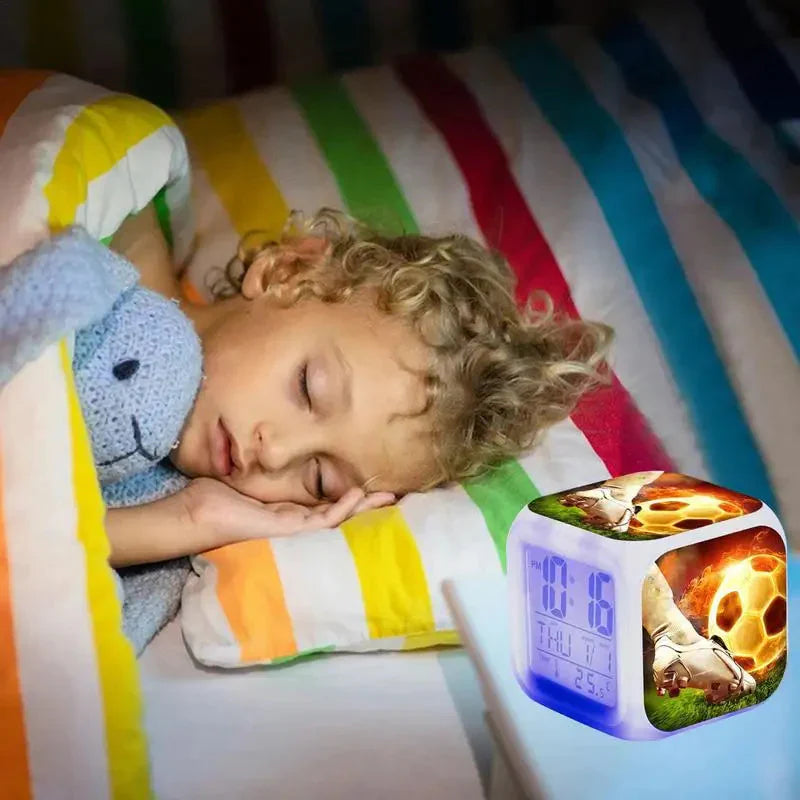 Sveglia digitale a cubo tema calcio: Il tuo risveglio da campione!