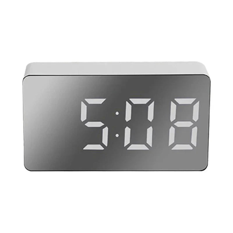 Stanco delle solite sveglie noiose? Ti presentiamo la nostra sveglia digitale con display a specchio, l'accessorio perfetto per la tua camera da letto o il tuo ufficio. Non è solo un orologio, ma un vero e proprio pezzo di design che si integra armoniosamente in qualsiasi ambiente moderno. Il suo display a specchio non solo mostra l'ora con chiarezza, ma ti offre anche una superficie riflettente utile per un ultimo controllo al tuo aspetto prima di iniziare la giornata. Immagina di svegliarti dolcemente ogni mattina con un orologio che è anche un elemento di stile, rendendo il tuo risveglio più piacevole e la tua stanza più chic.