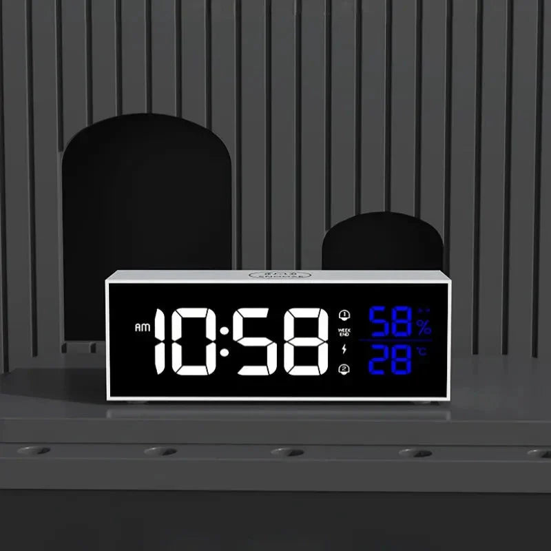 Stanco di svegliarti in ritardo o di dover strizzare gli occhi per leggere l'ora? La nostra sveglia digitale con grandi numeri LED è la soluzione che fa per te! Progettata per essere intuitiva e funzionale, questa sveglia ti offre molto più di un semplice orologio. Con un design moderno e minimale, si adatta perfettamente a qualsiasi comodino o scrivania, portando un tocco di eleganza nella tua stanza. Non solo ti mostra l'ora con chiarezza, ma ti tiene anche aggiornato sulle condizioni ambientali della tua casa, garantendoti un comfort ottimale fin dal mattino.