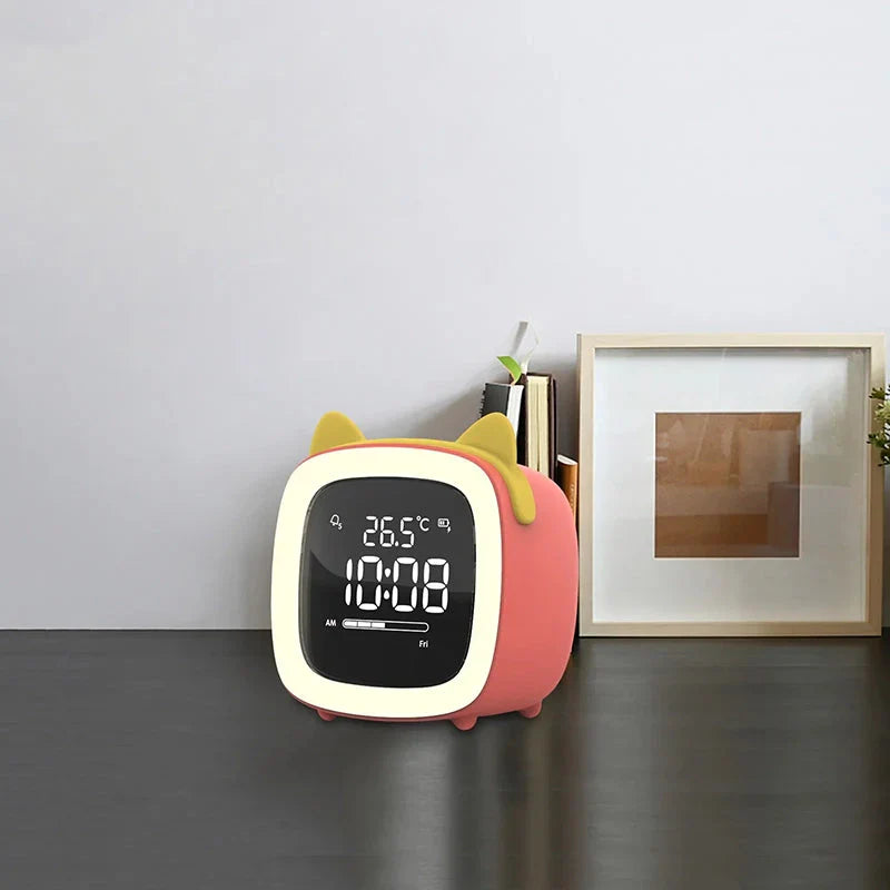 Immagina un risveglio dolce e sereno ogni mattina. La nostra sveglia gatto con luce notturna è qui per rendere questo sogno realtà! Con il suo design adorabile a forma di gatto e le orecchie giocose, aggiunge un tocco di tenerezza e allegria a qualsiasi comodino o scrivania. Non è solo un orologio, ma un vero e proprio piccolo amico che ti accompagna durante la notte con la sua luce soffusa e ti sveglia delicatamente, trasformando l'inizio della tua giornata in un momento piacevole e rilassante. Dimentica i bruschi risvegli con suonerie assordanti; questa sveglia è pensata per il tuo benessere e quello dei tuoi bambini, offrendo un'esperienza di risveglio totalmente nuova.