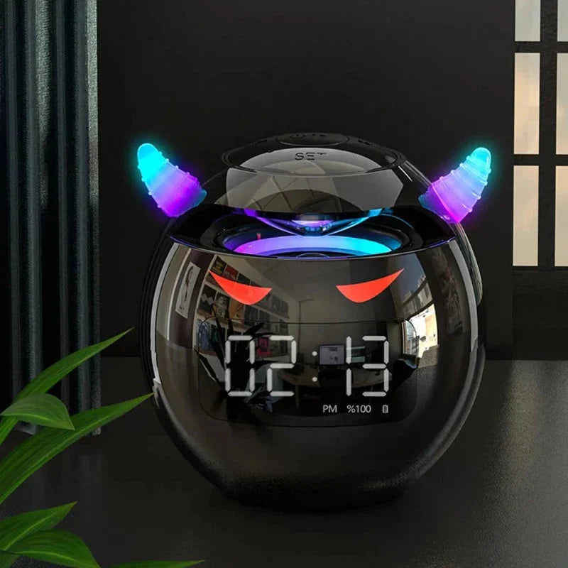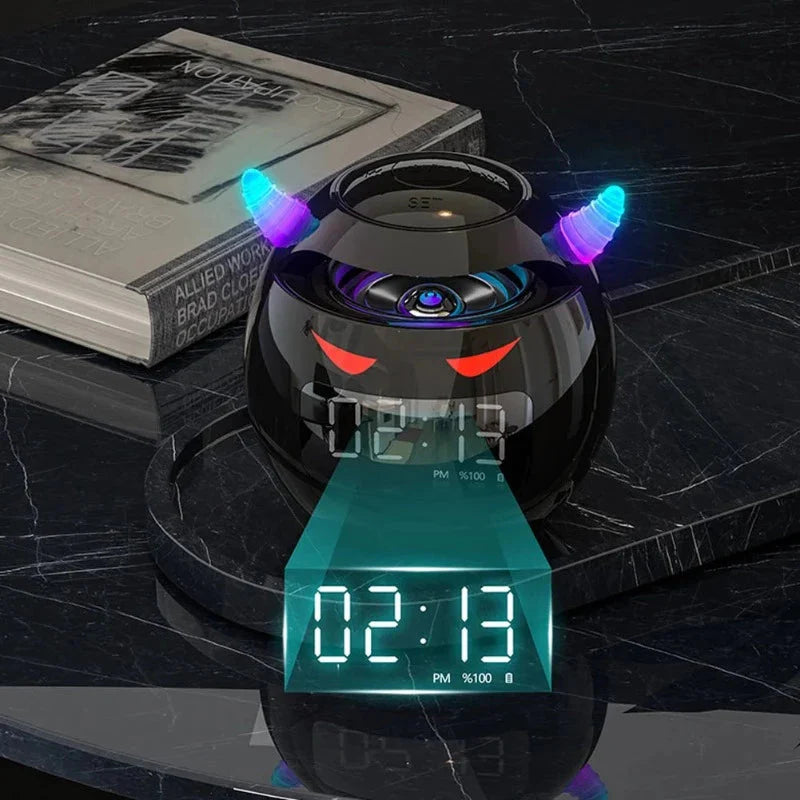 Questa sveglia originale con altoparlante Bluetooth non è un semplice orologio. È un dispositivo multifunzione che rivoluzionerà la tua routine mattutina e le tue serate. Grazie al potente altoparlante Bluetooth integrato, potrai collegare facilmente il tuo smartphone o tablet e ascoltare musica, podcast o audiolibri con una qualità del suono sorprendente. Le sue luci LED integrate, che richiamano delle simpatiche corna, cambiano colore creando un'atmosfera magica e personalizzabile. È perfetta per creare un ambiente rilassante prima di dormire o per dare un tocco di energia al tuo risveglio. Lascia che la musica e le luci ti accompagnino in ogni momento della giornata!